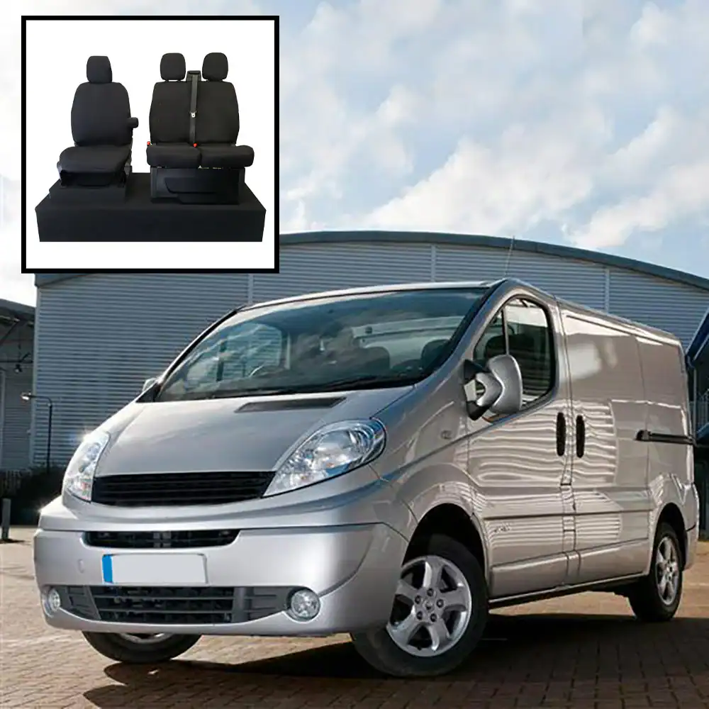 These tailored seat covers for Vauxhall Vivaro 1 Plus 1 FRONT Seat Covers 2001-2014Â are made from a superior 600 denier cotton backed material. The material used is rigorously tested under laboratory conditions to ensure full protection of your original seats from the elements. Using the latest technologies these seat covers are designed not just to protect your seats but also to provide an ultra-smart look to the vehicle interior.